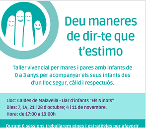 Demà dimarts 7 d’octubre, comencem un cicle de xerrades, sis dimarts consecutiu, per parlar de diferents temes d’educació dinfants 0-3 anys. Us esperem.